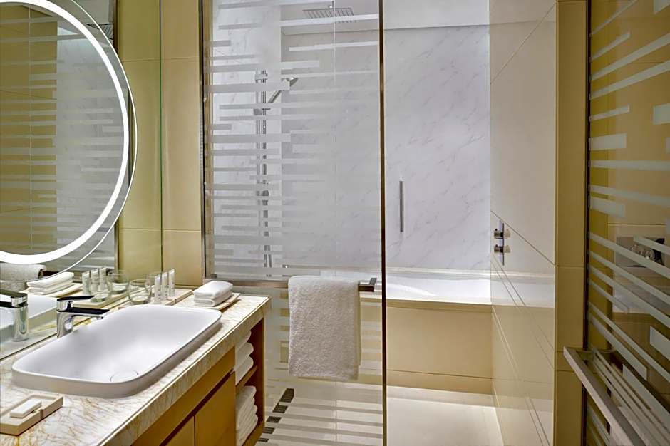 Superior With Views is 344 square feet and includes either a queen-size bed 150-154 width or a double bed 131-150 width plus extra beds on demand, desk, hairdryer, ironing set, and safe.